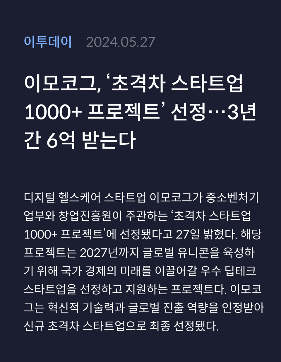 이모코그는 대규모 투자를 받았으며, 국내외 대기업과도 강한 협력관계를 맺었습니다.