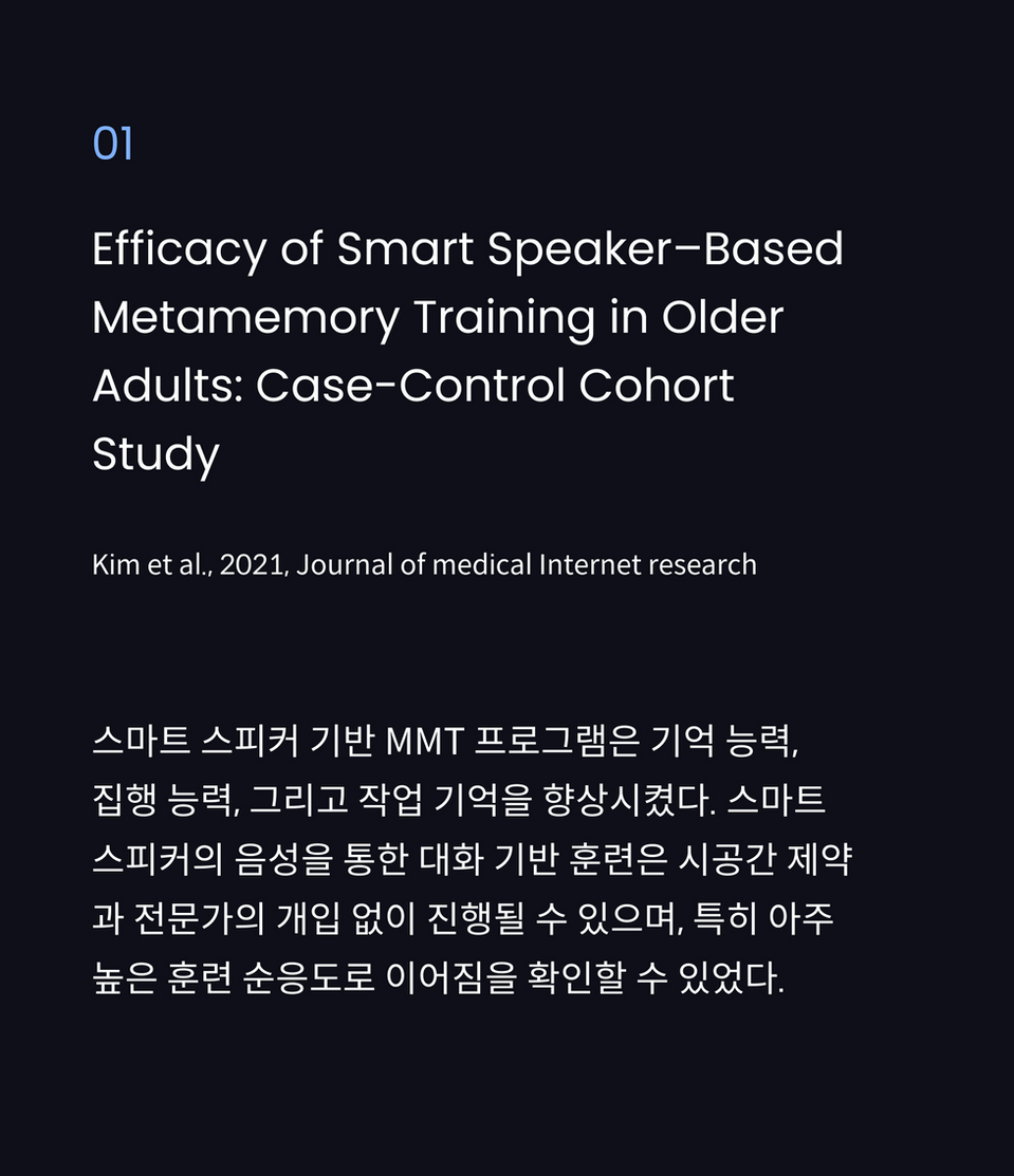 경도인지장애 환자가 쉽게 사용할 수 있는 음성 대화 기반 인터페이스를 갖추고 있습니다.