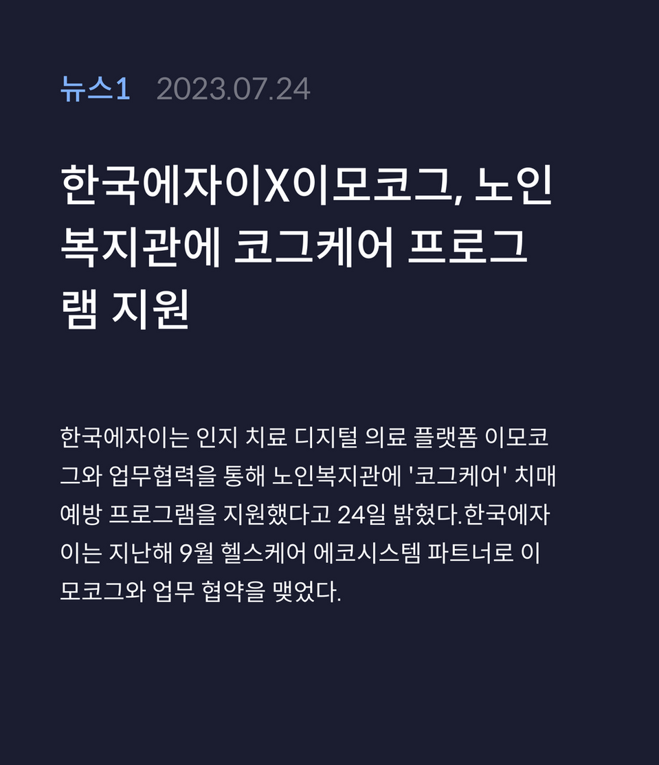 이모코그 는 치매 선별부터 진단, 치료까지 환자의 여정 전체를 케어할 수 있는 에코시스템을 구축합니다